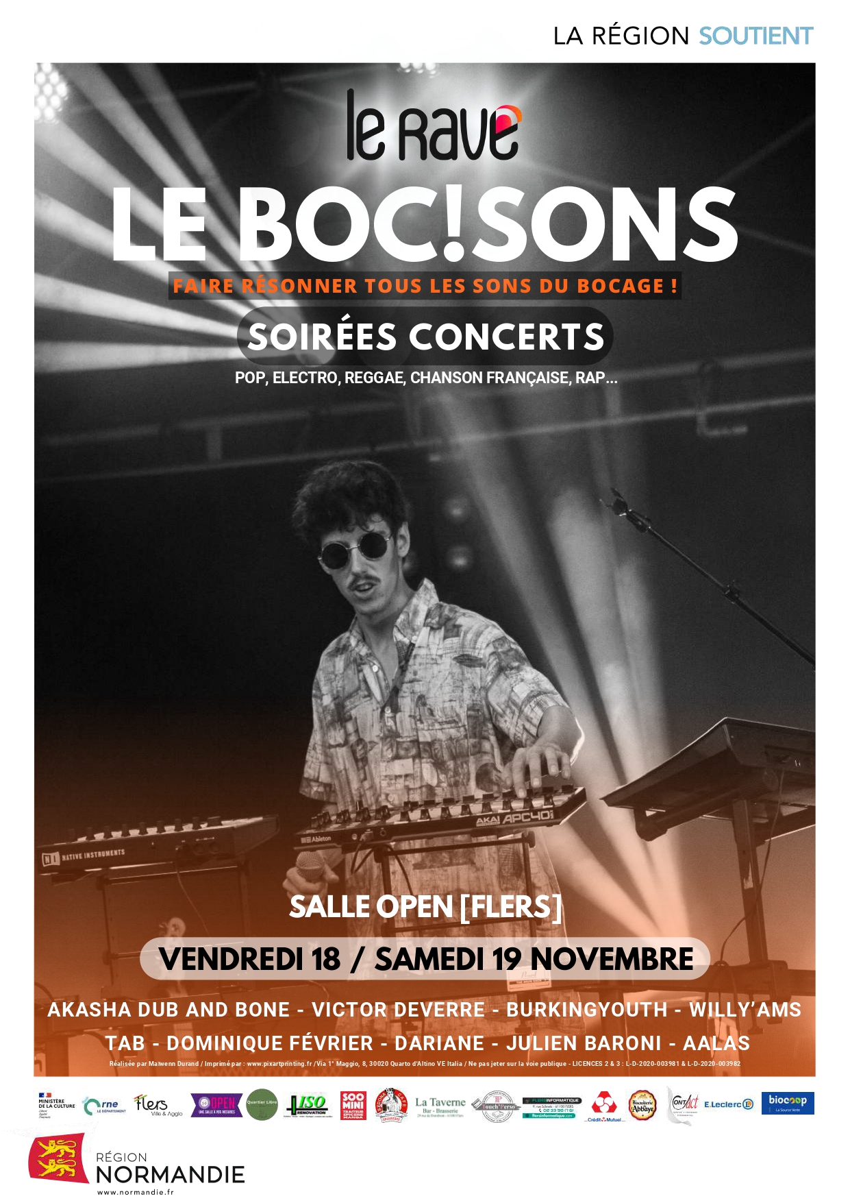 Pop, rap, reggae, chanson française, vous trouverez votre compte parmi les neuf artistes présents dont Akasha Dub and Bone, Victor Deverre, BurkingYouth, Willy’ams, TAB, Dominique Février, Dariane, Julien Baroni et Aalas.