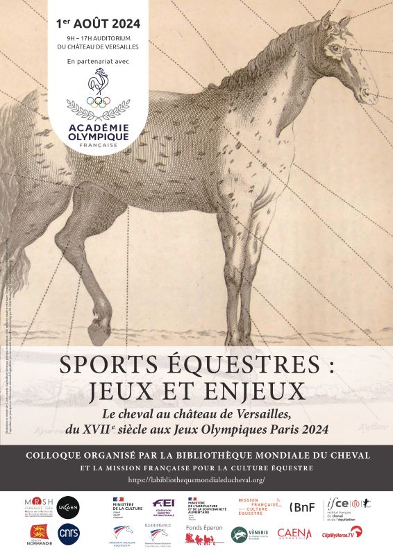Le colloque "Sports équestres : jeux et enjeux" organisés le 1ᵉʳ août par la Bibliothèque Mondiale du Cheval. Ce colloque est accessible uniquement sur invitation, mais sera diffusé en ligne via le lien ci-dessous.