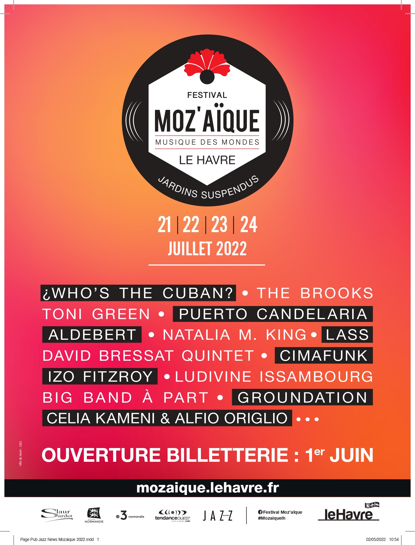 MoZ'aïque, c'est avant tout une aventure, un périple où chaque escale est un nouveau monde à découvrir. De l'Amérique latine avec Cimafunk ou Puerto Candelaria, au Cameroun avec Célia Kameni & Alfio Origlio, en passant par le reggae californien de Groundation ou le blues ouest-américain de Toni Green et Nathalia M. King, ce voyage vous emmènera au bout du monde, sans aucun décalage horaire !