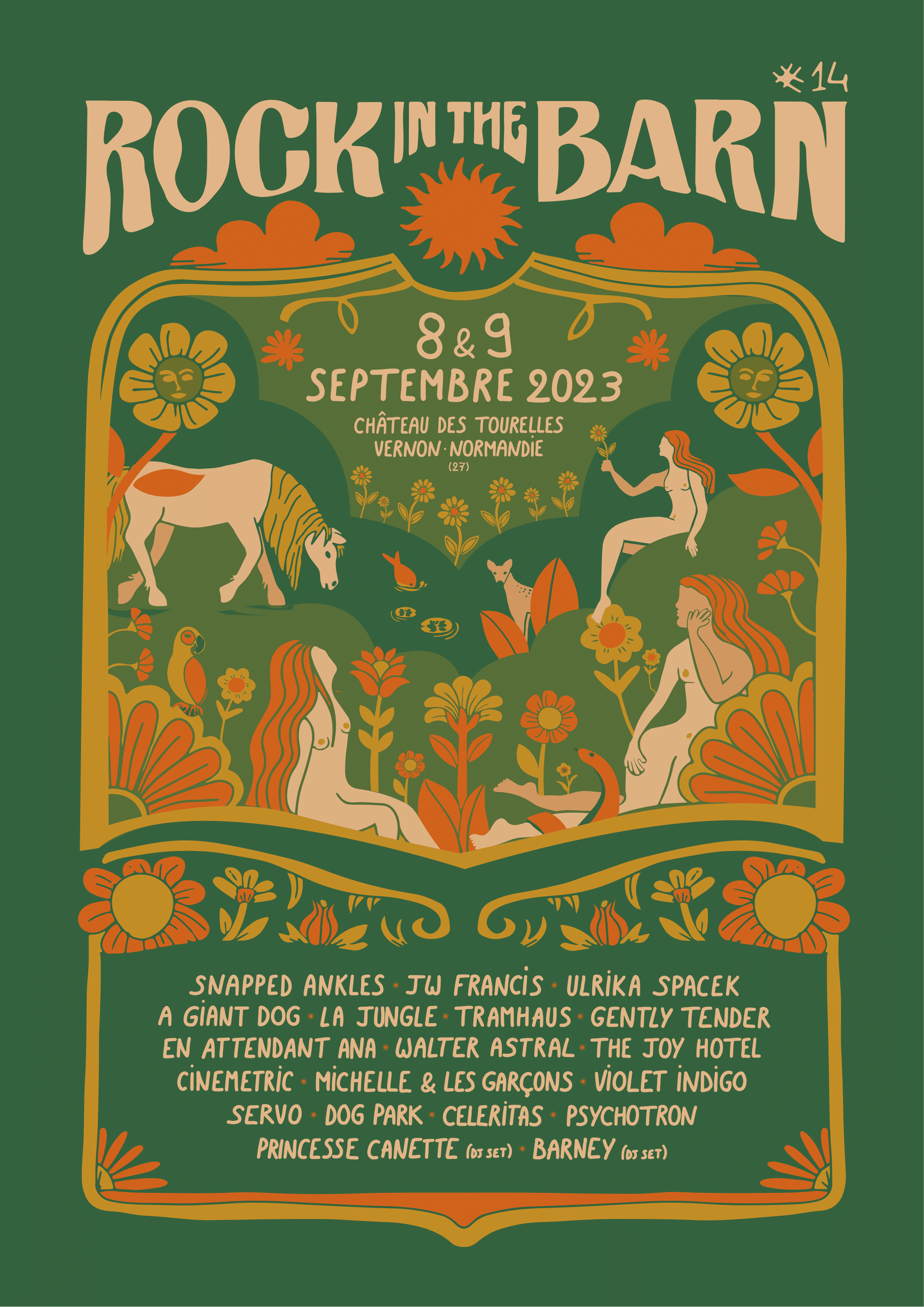 C’est dans le cadre idyllique du Château des Tourelles et de son parc arboré que 18 formations issues du Royaume-Uni, de Belgique, des USA, de Paris ou de Normandie enchaineront concerts et incantations dansantes, toujours accompagnés de bières fraiches et de gourmandises locales. Une programmation éclectique qui suit sa ligne directrice : des découvertes Rock, Garage, Pop, psychées, post-punk, électroniques d’ici et d’ailleurs pour une édition fiévreuse et renouvelée.
