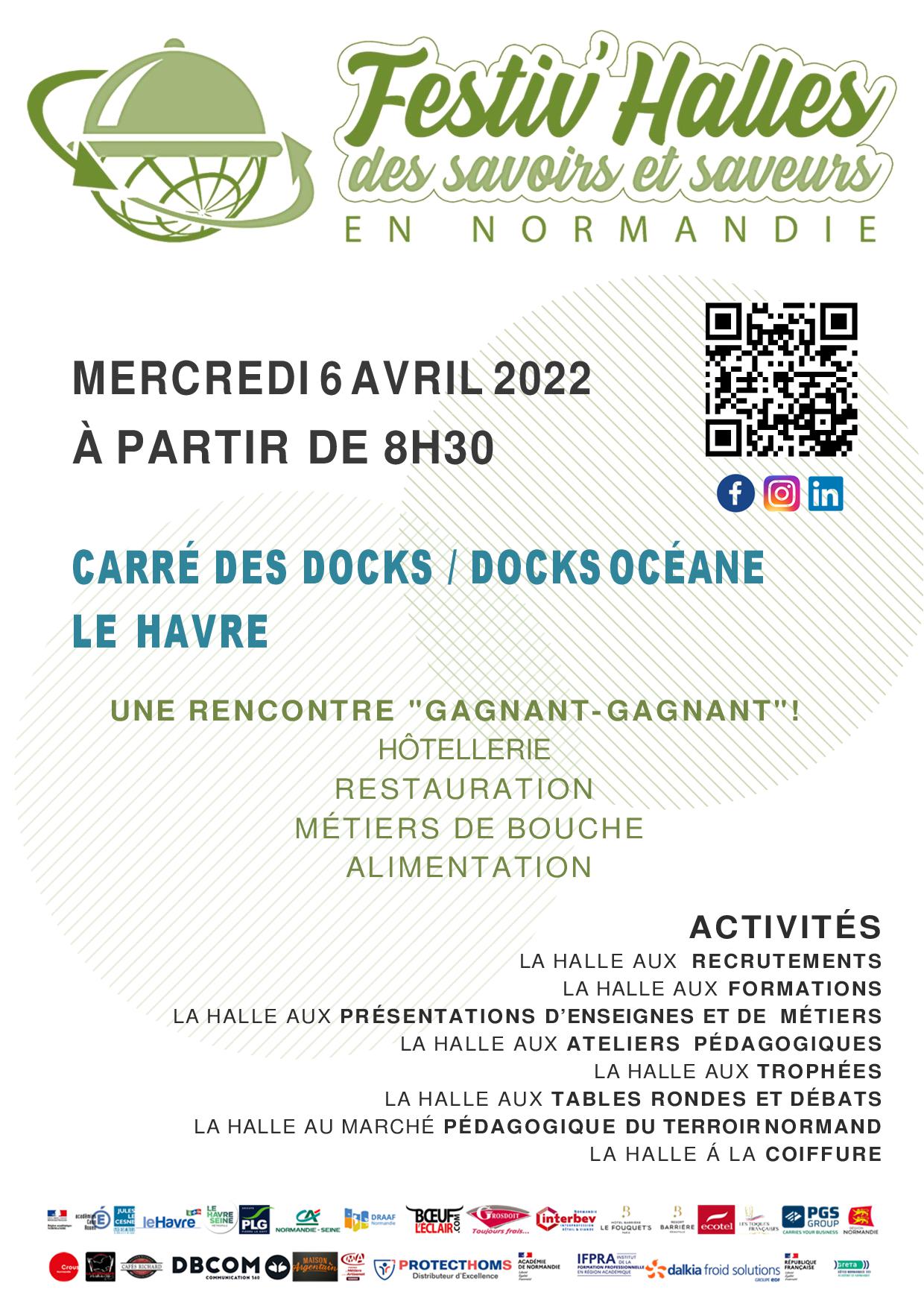 Le lycée des Métiers Jules Le Cesne du Havre vous annonce la tenue de la 10ème édition du « Festiv'Halles des Savoirs et Saveurs en Normandie » le mercredi 6 avril 2022 à partir de 8h30 au Carré des Docks le Havre Normandie.